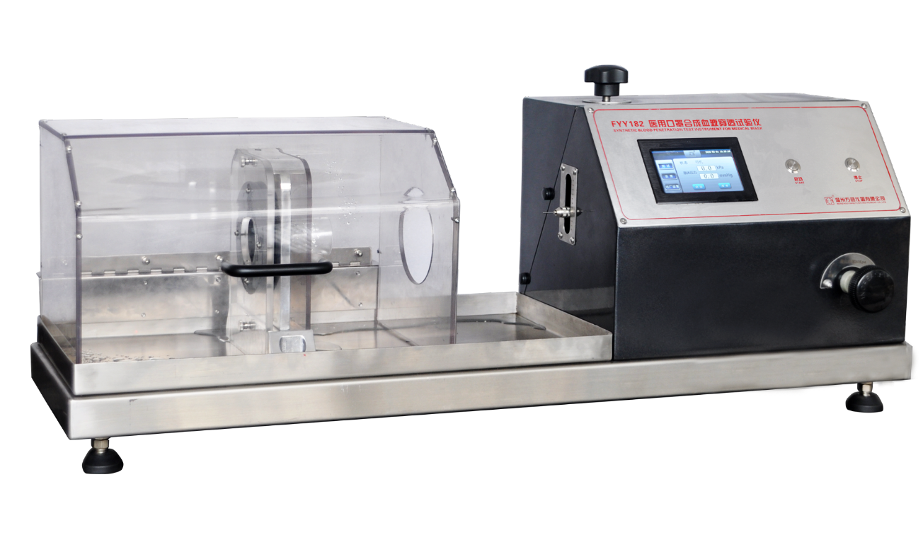 FYY182口罩合成血液穿透試驗儀將醫(yī)用口罩支撐在試驗裝置上,以一定體積的合成血液水平噴射到口罩上,模擬口罩被穿透后血液噴濺的場景。使之與醫(yī)學(xué)活動過程保持一致。從而觀察口罩的穿透情況來評價口罩抗合成血液穿透性。